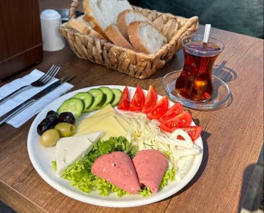 2 b cay, tereyağı, çik, reçel, pey, simit, siyah zeytin, söğüş, patates cipsi,sahanda yumurta